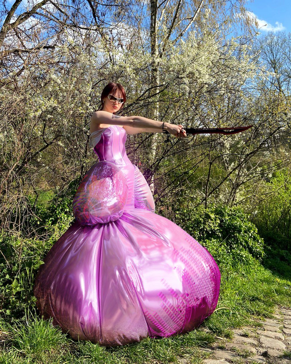 Tribute Brand was founded in 2020 by Gala Marija Vrbanic as a "platform for contactless cyber fashion" headquartered in Croatia. Drawing inspiration of the gaming world and its massive legions of virtual avatars, the fashion house crafts otherworldly designs of wildly unusual pieces with bold silhouettes and eccentric shapes. Just imagine holographic balloon-like ball gowns, levitating alien green colored trench coats, and second skin metallic tops. All of which are otherwise looks that simply wouldn't be feasible due to a series of logistical problems - gravity.